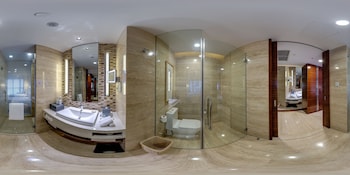 Stayed for 3 nights with our package tour of China. Room was spacious and clean. Located opposite a shopping centre with bars and restaurants. Bathroom was the best part of our stayed. Not often with...