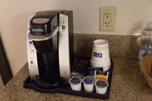 Good In room coffee and tea supplies with a Keuring machine Hooks to hang clothes outside of closet Lounge chair in room Sensor desk lamp with work desk and chair Free daily newspaper Excellent...