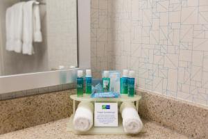 I stay in a lot of hotels and I like the Holiday Inn brand. This hotel in particular is the best I jave stayed at...just wow. The property is brand new, the rooms are huge, all the equipment is...