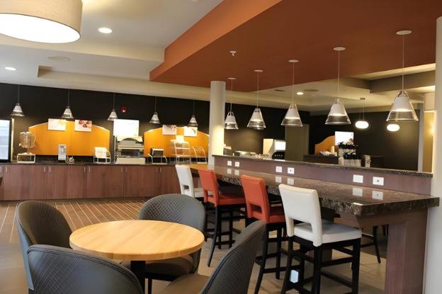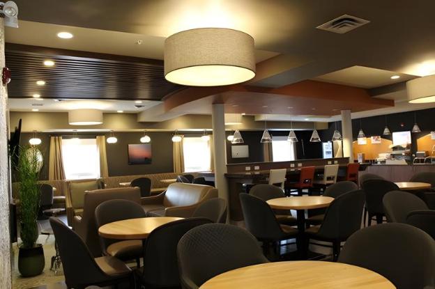 Up here for 10 days for business. Nice clean room..very new. Asked the staff for all regular coffee and everyday they left me 4 pods and no decaf. Breakfast was ok, after 10 days a little boring...