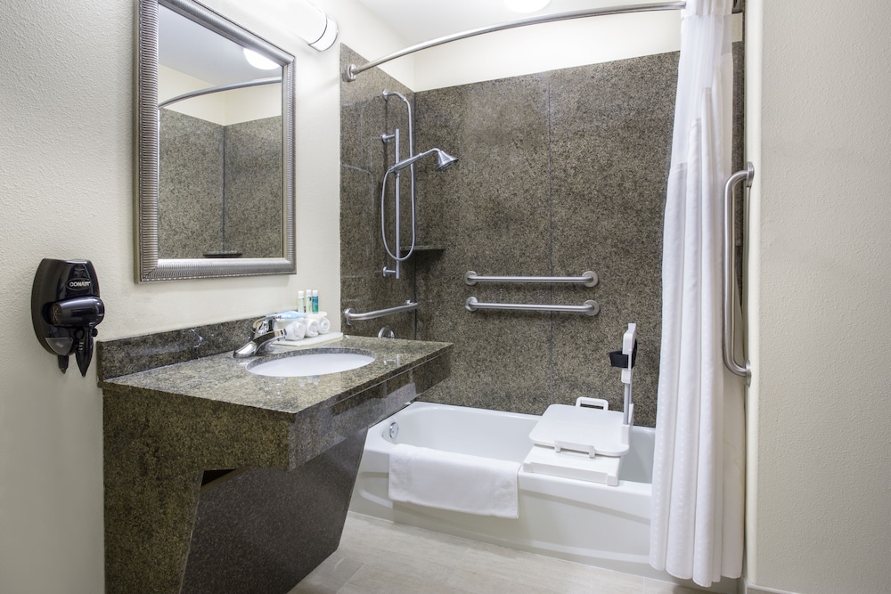 Make yourself at home in one of the 66 air-conditioned rooms featuring refrigerators and microwaves. Wired and wireless Internet access is complimentary, while 37-inch flat-screen televisions with satellite programming provide entertainment. Private bathrooms with bathtubs or showers feature complimentary toiletries and hair dryers. Conveniences include desks and complimentary weekday newspapers, as well as phones with free local calls.