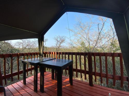 Family tent on deck in valley incllinen