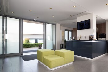 A super clean, modern and friendly hotel. Garage, free and stable wifi, silent surroundings and restaurant and pizzeria just in front of the hotel. Very large choice of breakfast buffet. Not so many...
