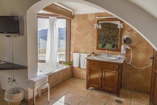 We booked for two nights. The surly receptionist put us off to start. The room, a junior suite, was rustic, to say the least. Dark tiles, dark heavy furniture. The bath was separated from the...