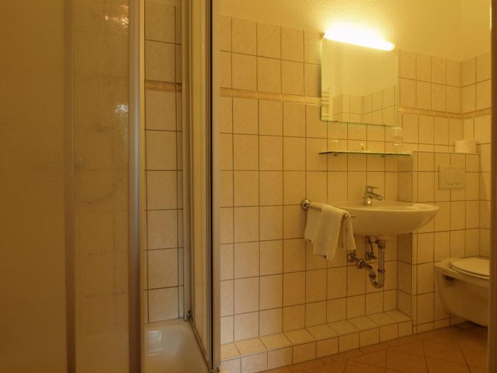 Wir blieben für eine Nacht auf der Durchreise. Unser Zimmer im ersten Stock war sehr großzügig mit separatem Vorraum, einem guten Badezimmer mit großer Dusche und hübschen Fliesen, einem Schlafraum...