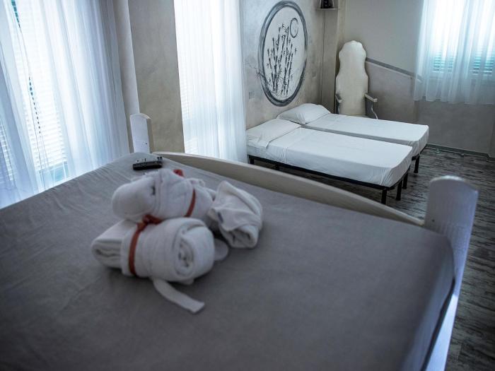 Rooms are equipped with air conditioning. Rooms include a double bed. Children's beds can be requested for younger guests. A telephone, a TV and WiFi are provided as well. Slippers are included. Bathrooms are equipped with a shower and a whirlpool bath, as well as bathrobes.