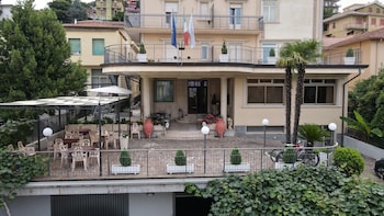We were on a 16 day holiday to Italy with Leger Holidays and stayed for two nights at this hotel, where the coach parked you had a steep gradient to walk up and steps to enter the hotel. A small lift...