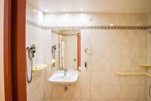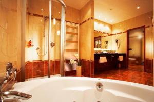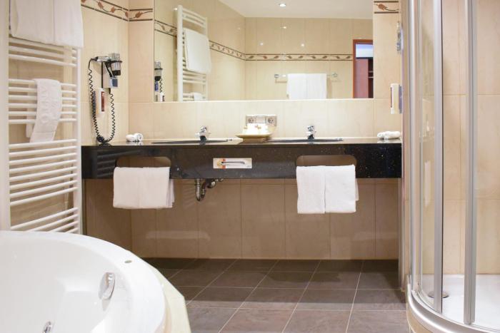 This hotel has a lot going for it. Our room was large and the beds were very comfortable. The bathroom was modern and well equipped but we found the floor and the bathtub were unusually slippery...