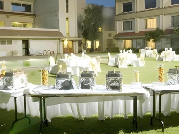 Hotel Express Residency is located 7 km from the Reliance refinery. The hotel has an outdoor pool and fitness centre. It maintains 100 centrally air conditioned rooms and features a television with satellite channels, kettle for tea and coffee and en suite bathroom supplied with hot and cold water. Hotel Express Residency features a fully equipped business centre with audio and video conferencing facilities. It also has banquet facilities, medical services, WiFi access and in-house laundry services. The hotel in Jamnagar also has a coffee shop and poolside multi-cuisine restaurant. The hotel in Jamnagar is 21 from the Essar Oil Refinery, 23 km from the GSFC Limited, 6 km from the Sikka Railway Station and 17 km from the Jamnagar Airport. null