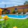 Guests can enjoy a refreshing swim in the outdoor pool area.