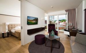 This hotel is quite new. Modern and comfy rooms. The village is small and cute. We were surprised that most of the guests were so old but that means it is really quiet and peaceful at night. No party...