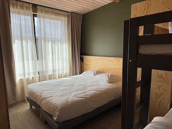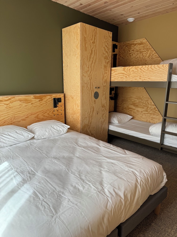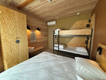 1. 1 Queen Bed and 2 Twin Bunk Beds
