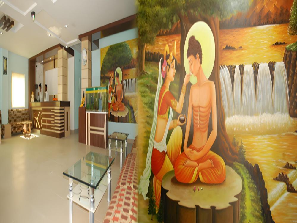 Located at 14 km from the Gaya Railway Junction, Hotel Om International provides budget accommodation in Bodhgaya. It is located at 1 km from the famous the Mahabodhi Temple. The hotel provides Internet access to the guests. This 3-storey hotel has 44 rooms. There is an attached bathroom in every room. Also, every room has an air-conditioning system, color television, mini-bar, and telephone. This Bodhgaya hotel has an in-house multi-cuisine restaurant and a coffee shop. The hotel provides laundry service, 24-hour security facility, and 24-hour room service. Hotel Om International has a travel counter that makes transportation arrangements for the guests. The Gaya Bus Stand is at 13 km and the Gaya Airport is at 14 km from this hotel. Guests can explore the Bodhi Tree (1 km), Royal Bhutan Temple (1 km), and Burmese Monastery (1 km).