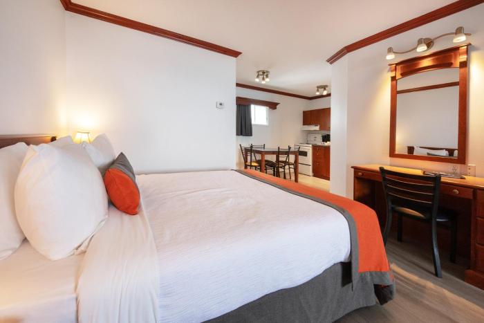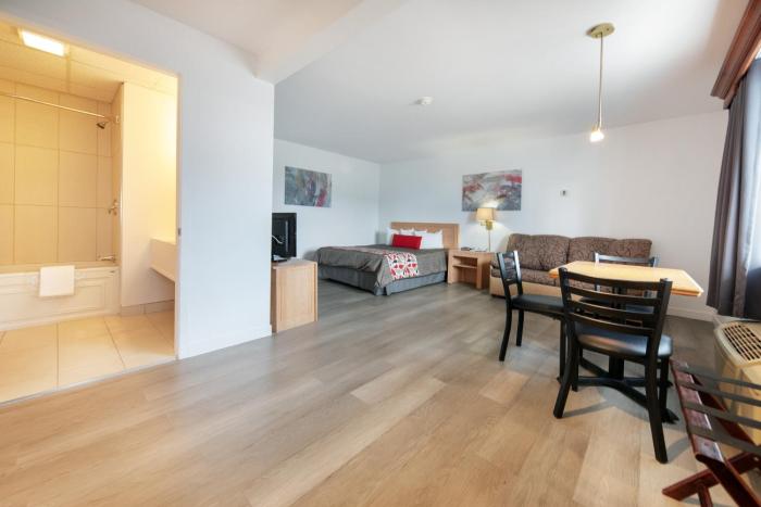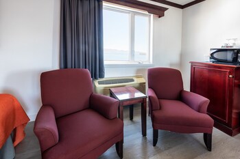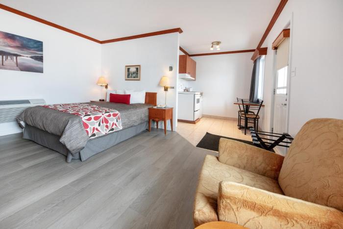 Well located motel in Gaspé, up a steep hill form main street, great to work up an appetite. Efficient check-in/check-out, knowledgeable staff. Wide clean rooms as described, working appliances...