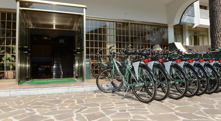 Nice hotel not far from the sea. Located in a good quiet area? a lot op pine trees/ Near the supermarket an restaurants and park. Free bikes ( for several hours ). Very good breakfast. Clean room...