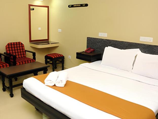 "Offering free Wi-Fi Internet access, Hotel Rajam is located at 1 km from the Kanyakumari Railway Station. Guests can visit the Vivekananda Rock Memorial which is at 1 km from this stay. This hotel in Kanyakumari also provides round-the-clock security for its guests. All 34 guestrooms in this 3-storey property are air-conditioned and have attached bathrooms. The rooms have wardrobes, and hot/cold running water supply. It also has a satellite TV and make-up mirror. This property in Kanyakumari provides 24-hour front desk, laundry, and room service. It has a restaurant, banquet hall, and conference room. Hotel Rajam is accessible from the Trivandrum International Airport (93 km) and the Chakara Kulam Bus Stop (1 km). Guests can avail of the transportation services offered by this accommodation. Guests can visit the Vattakottai Fort (6 km), Our Lady of Snows Shrine Basilica (133 km), and the Thiruvalluvar Statue (1 km)." null