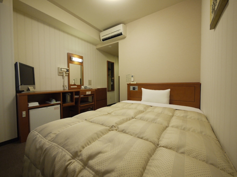 AN Average hotel near the Saga station. Nice room with fridge and water kettle. Small bathroom. Stiff beds with even stiffer cushions. Very quiet rooms. A lot of restaurants and shops near the hotel...