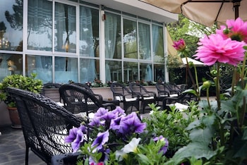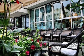 This hotel welcomes guests in Milano Marittima.