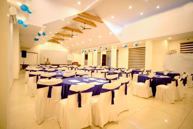 • The banquet hall has a capacity of 300 people and is equipped with a projector, sound, collar mic and white board.