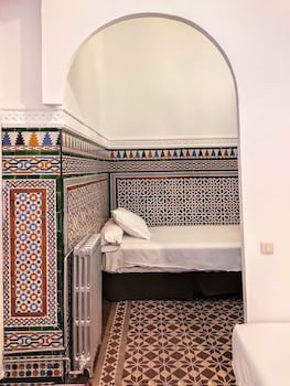 This is a beautiful traditional style with that lovely Moroccan influence. Some say dated, I say authentic. Thee isn’t the luxury of a TV in your room or coffee maker or minibar... but this would...
