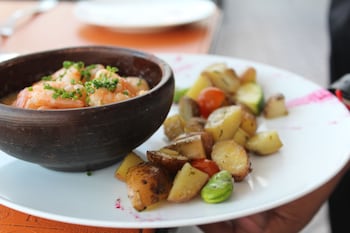 We have arrived at 12:30, we drinked a great white wine Brut with a great baby beef and a garlic shrimp, unbelievable good! For desert we had a prisco limon pie and a kind of wine marshmallow...