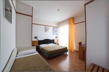 Old hotel in need of refurbishing. Nothing like the pictures on the web site. This has nothing to do with a 4-star hotel, not even by Italian standards. One tiny slow elevator. If you need exercise...