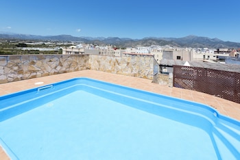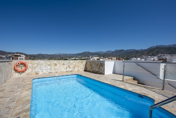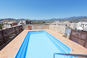 I'm sitting on the shaded part of the large roof terrace writing this. Views of mountains, the town and a bit of sea. Hotel clean and well maintained. Breakfast a good selection and plentiful. Staff...