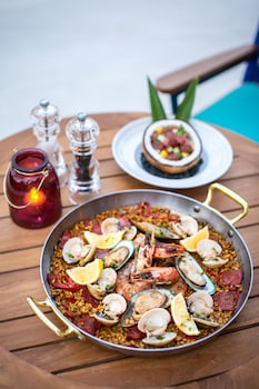The hotel provides a number of options for sports and recreation. While the adults swim a few laps in the outdoor pool, children can enjoy splashing about in their own swimming area. There are many ways to relax or stay active at the hotel, including a gym and a spa. Children are well looked after in the kids' club (no extra charge). Copyright GIATA 2004 - 2022. Multilingual, powered by www.giata.com for client no. 126311
