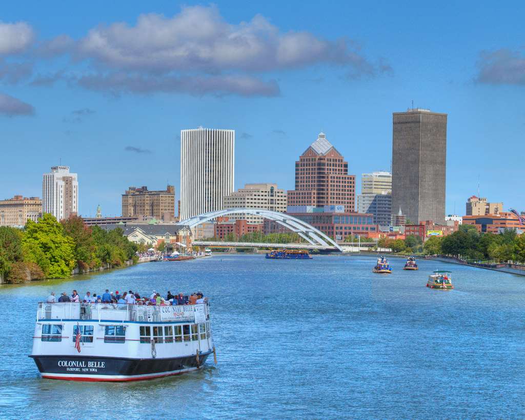 With a stay at Hyatt Regency Rochester in Rochester (Downtown Rochester), you'll be steps from Rochester Riverside Convention Center and 8 minutes by foot from Blue Cross Arena. This hotel is 0.6 mi (0.9 km) from Strong and 0.8 mi (1.2 km) from Eastman School of Music.