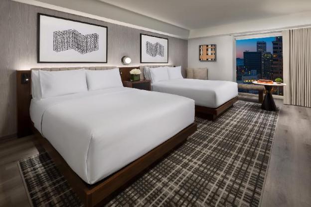 Make yourself at home in one of the 681 air-conditioned rooms featuring iPod docking stations and flat-screen televisions. Your pillowtop bed comes with down comforters. Complimentary wired and wireless Internet access keeps you connected, and cable programming provides entertainment. Private bathrooms with shower/tub combinations feature designer toiletries and hair dryers.