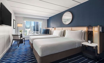 Other than being in a good location for tourists, avoid this hotel at all costs. Pros Location to major tourist attractions and restaurants. Nice view. Julie the waitress in the Sailmaker...