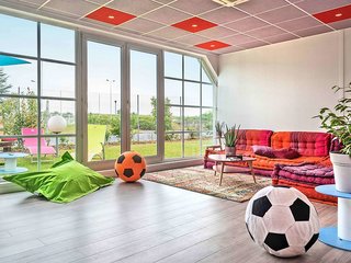 I wish all Ibis Budget hotels would be run like this. The hotel has an open yard with seating, an extra room to sit and relax in and a spacious feel. The breakfast was great! If all Ibis budget...