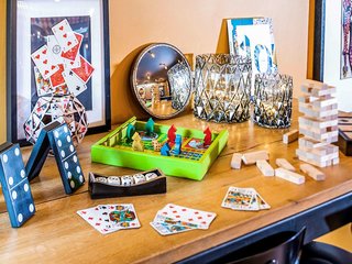 Hotel location is a quick walk to the center . The breakfast selection was very nice. Hotel has cute and colorful interior. We enjoyed the foosball table. Wished the room for 4 was larger...but it...