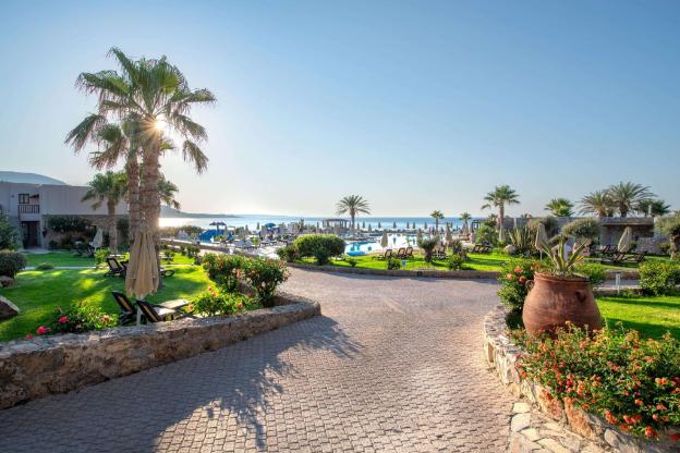 This resort sits on the bay of Malia on the island of Crete. Apart from the little shops on the property with knock off "designer " goods the place is beautiful. Only 20 minutes from the airport...