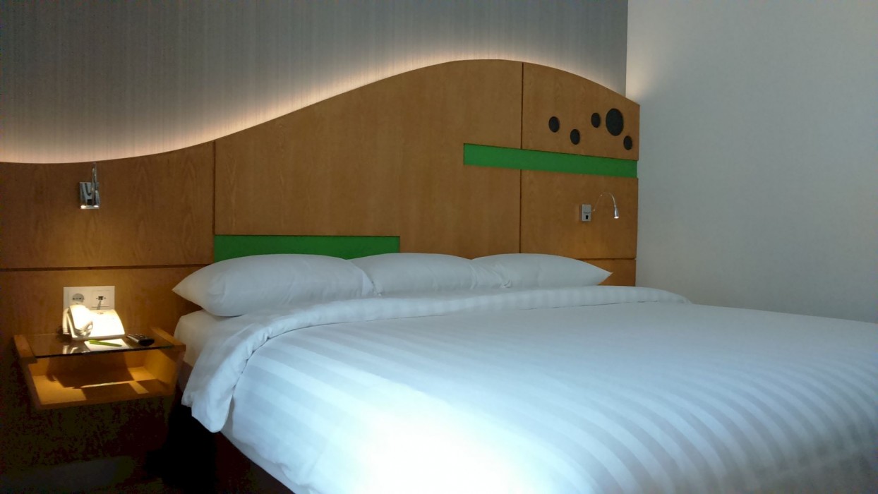 the hotel is close to the airport with free shuttle service, the hotel service is friendly enough, but the breakfast is not as expected but the swimming pool area is quite attractive and very nice...