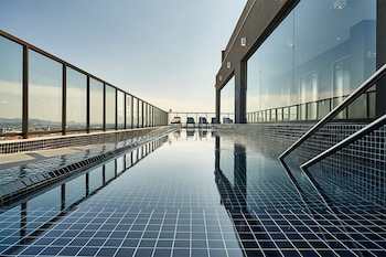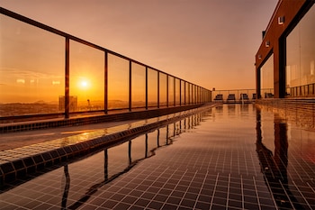 We had some doubts after a poor reception but this good hotel is fantastic value. Room good and large view of city AMAZING! Roof top pool and terrace made our 5 nights stay a delight. Take the tram...
