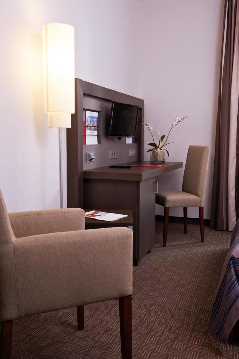 Rooms include air conditioning and central heating. A safe, a minibar and a desk are also available. Additional features include a mini fridge and a tea/coffee station. A telephone, satellite television, a radio and WiFi (for a fee) provide all the essentials for a comfortable vacation. Bathrooms are equipped with a shower and a hairdryer. The hotel has family rooms, 146 non-smoking rooms and 1 smoking room.