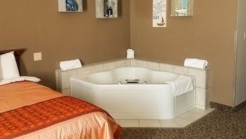 Make yourself at home in one of the 50 air-conditioned rooms featuring microwaves. Complimentary wireless Internet access keeps you connected, and cable programming is available for your entertainment. Private bathrooms have jetted bathtubs. Conveniences include desks and coffee/tea makers, as well as phones with free local calls.