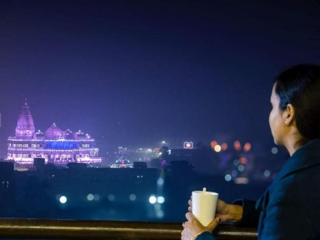 Really good experience amazing stay visit again this place all staff is very good and nice behaviour, top floor Restrurant seating area is very amazing kitchen food is superb all mandir near by...