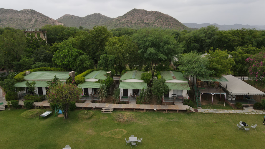 Nestled just 15 km from Jaipur, Kanota Camp Resorts offers a tranquil escape into nature’s embrace. Overlooking the serene Kanota Dam, this eco-friendly retreat spans 6 acres of lush greenery, providing a perfect blend of rustic charm and modern comforts. Guests can choose between luxury tents and lake-view cottages, both equipped with contemporary amenities. The absence of televisions in rooms encourages guests to immerse themselves in the natural surroundings, from the chirping of birds at dawn to the tranquil views of the dam at sunset.