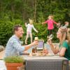 Good location, very reachable. Nice cottages in the forest, the cottage for 6 is nice and comfortable. The pool is nice for the children as well as as the sport yard and play...