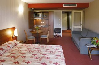 This hotel is located a residential elegant area and in the green area of the park l'Orangerie. Nice rooms that are small appartments with balcony and everything (desk, kitchen, night hall, separate...