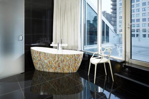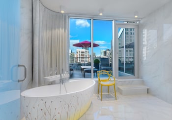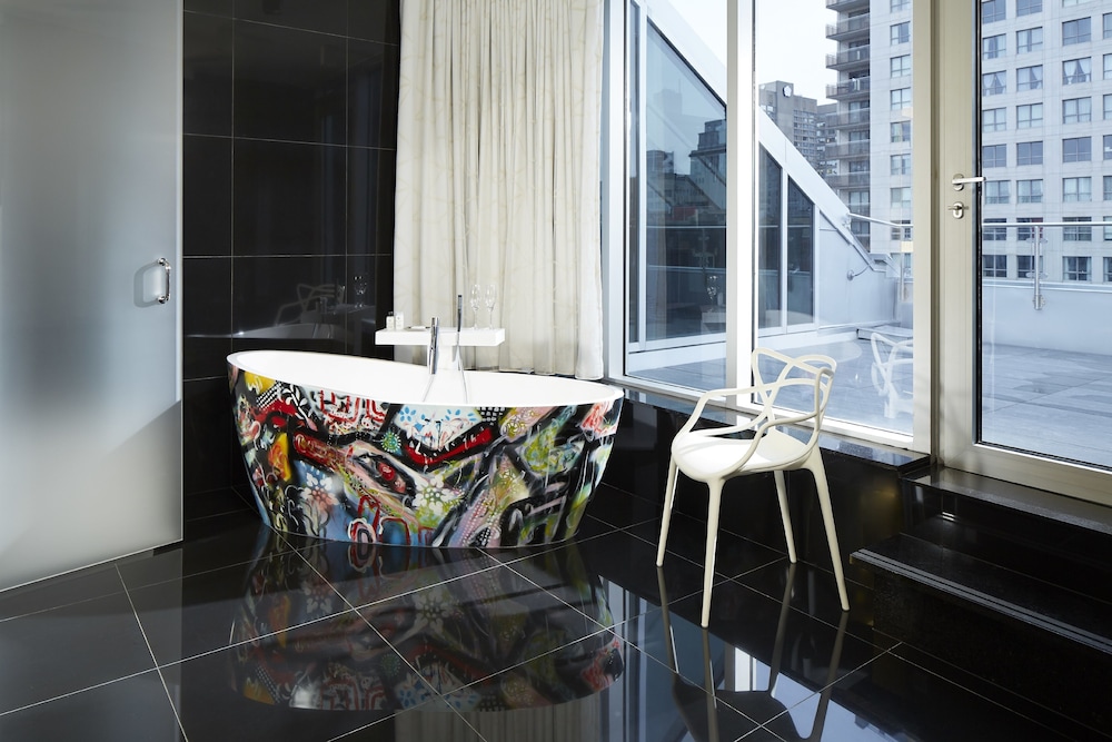 Make yourself at home in one of the 90 individually decorated guestrooms, featuring iPod docking stations and flat-screen televisions. Your memory foam bed comes with down comforters and premium bedding. Complimentary wired and wireless Internet access keeps you connected, and digital programming provides entertainment. Private bathrooms with showers feature rainfall showerheads and designer toiletries.