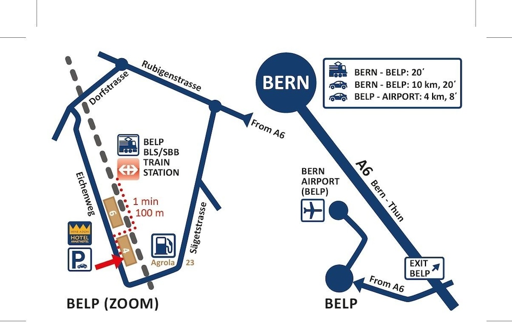 When you stay at Hine Adon Apart Hotel Bern-Airport in Belp, you'll be 14 minutes by car from Freibad Marzili. This aparthotel is 6.3 mi (10.2 km) from Clock Tower (Zeitglockenturm) and 9.6 mi (15.4 km) from Stade de Suisse Wankdorf.