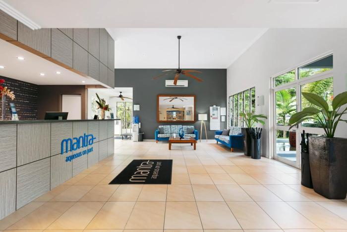 Located in Port Douglas, Mantra Aqueous on Port is within a 15-minute walk of Court House Museum and Rex Smeal Park. This 4.5-star aparthotel is 13.4 mi (21.5 km) from Mossman Gorge and 0.6 mi (0.9 km) from St Mary's by the Sea Chapel.