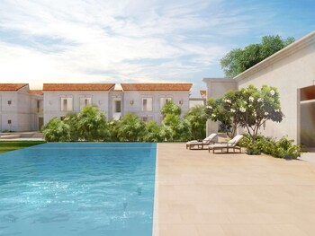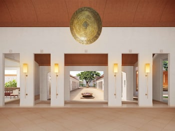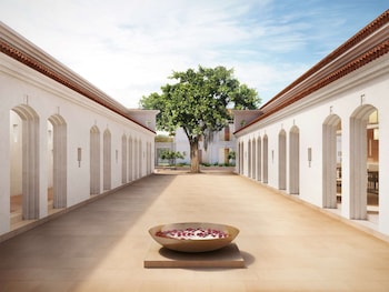The architecture unfolds enchantingly through a series of layers creating gentle transitions from outside to inside through verandas and framed openings. The Peepal tree (symbolically Bodhi) - the ultimate symbol of the power of Buddha - is viewed from the entrance through several frames and a serene courtyard that forms the emotional and physical heart of the hotel.The architecture of the hotel combines the design of the interior spaces and the landscaping of the exterior spaces. Water bodies, gentle and soothing colour palettes, and the mindful use of the five wisdoms of the Buddhist aspect of the Vajradhatu Mandala come together creating a holistic symphony to complement and resonate the simple, serene and tranquil essence of Buddhist philosophy and values.