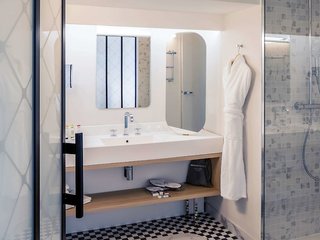 This was a big comedown from my last very pleasant Mercure stay. The room was tired and cramped. The shower/washbasin area is enclosed in plate glass with a door and a net curtain across the front...