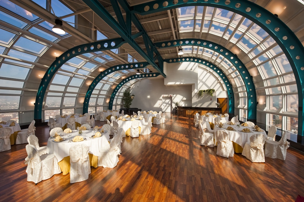 What a beautiful hotel, all pink lighting outside. Huge lobby with nice small bar. Rooms are huge with great decorating. Wierd high tub shower but overall great place. Penthouse breakfast area is...