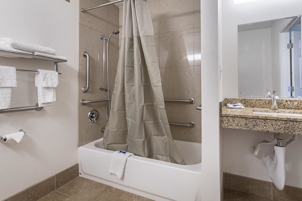 Make yourself at home in one of the 107 air-conditioned rooms featuring refrigerators and microwaves. Flat-screen televisions with cable programming provide entertainment, while complimentary wireless Internet access keeps you connected. Bathrooms with showers are provided.