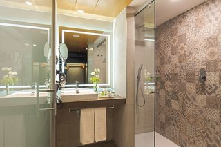 Modern hotel with a great shower located near the central area close to restaurants and attractions. Helpful front desk. Clean, spacious room...the only weird thing was that we were charged for in...